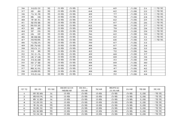 经过激烈角逐,有67名同学达到合格水平。最终排名如下: