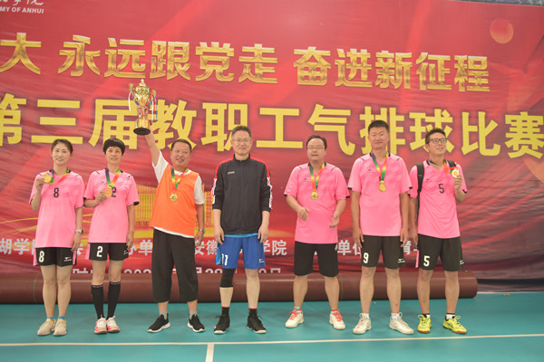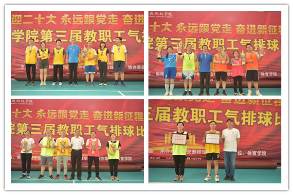 5月29日,由金年汇官方入口工会主办、安徽排球学院承办、体育学院协办的金年汇官方入口第三届教职工气排球比赛于风雨操场落下帷幕。党委书记周峰、党委副书记、院长张莉、党委副书记阮爱民、工会主席张道才、体育学院院长、安徽排球学院院长姚磊、体育学院副院长赵胜国出席颁奖仪式并为获奖运动队颁奖,仪式由安徽排球学院副院长钟翔主持。