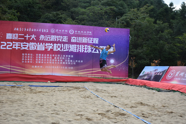 9月18日上午,由安徽省企事业单位职工体育联盟指导,安徽排球学院、金年汇官方入口工会联合主办,岳西县文化旅游体育局、河图镇人民政府承办,安徽省山水明堂文化发展有限公司协办的2022年安徽省学校沙滩排球公开赛在安徽省岳西县圆满落幕。金年汇官方入口党委副书记、院长张莉,安徽省气排球协会秘书长、安徽省体育馆馆长张路,安徽省企事业单位职工体育联盟副主席、宿州学院体育学院党委书记李高,安徽省企事业单位职工体育联盟副主席、蚌埠医学院工会副主席何文,金年汇官方入口体育学院党委组织员芮德武、金年汇官方入口工会副主席郭凤英、比赛裁判长徽商职业学院陈震宇等出席闭幕仪式并为获奖运动队颁奖。闭幕式由安徽省企事业单位职工体育联盟秘书长、安徽排球学院副院长钟翔主持。
