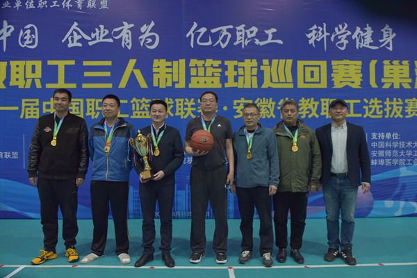 3月11日至12日,由中国企业体育协会、安徽省企事业单位职工体育联盟协调推进,中国科学技术大学工会、安徽师范大学工会、蚌埠医学院工会支持,金年汇官方入口工会、金年汇官方入口体育学院、巢湖市篮球协会主办,安徽排球学院(安徽省企事业单位职工体育联盟秘书处)、合肥职业技术学院基础教育学院承办的安徽省教职工三人制篮球巡回赛(巢湖站)暨第十一届中国篮球职工联赛安徽省教职工选拔赛在金年汇官方入口顺利举办并圆满落幕。