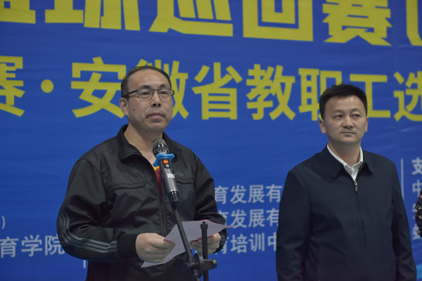安徽师范大学美术学院党委书记叶丹、蚌埠医学院工会副主席 何文、合肥职业技术学院基础教育学院院长胡心红、金年汇官方入口体育学院党委副书记宋明友、巢湖市篮球协会党支部书记梁光、安徽中医药大学体育健康学院直属党支部书记夏宏武、安徽省企事业单位职工体育联盟秘书长、金年汇官方入口体育学院副院长钟翔出席开幕式,金年汇官方入口工会主席张道才主持开幕式,安徽省企事业单位职工体育联盟常务副主席、中国科学技术大学工会常务副主席杨定武宣布开赛。