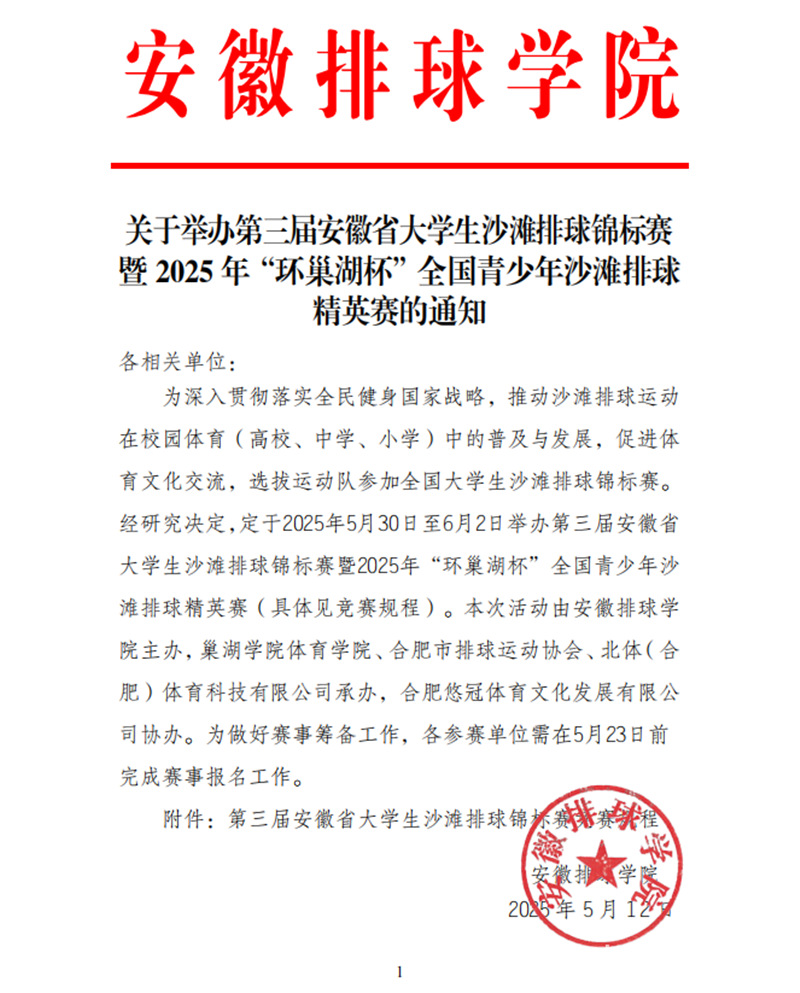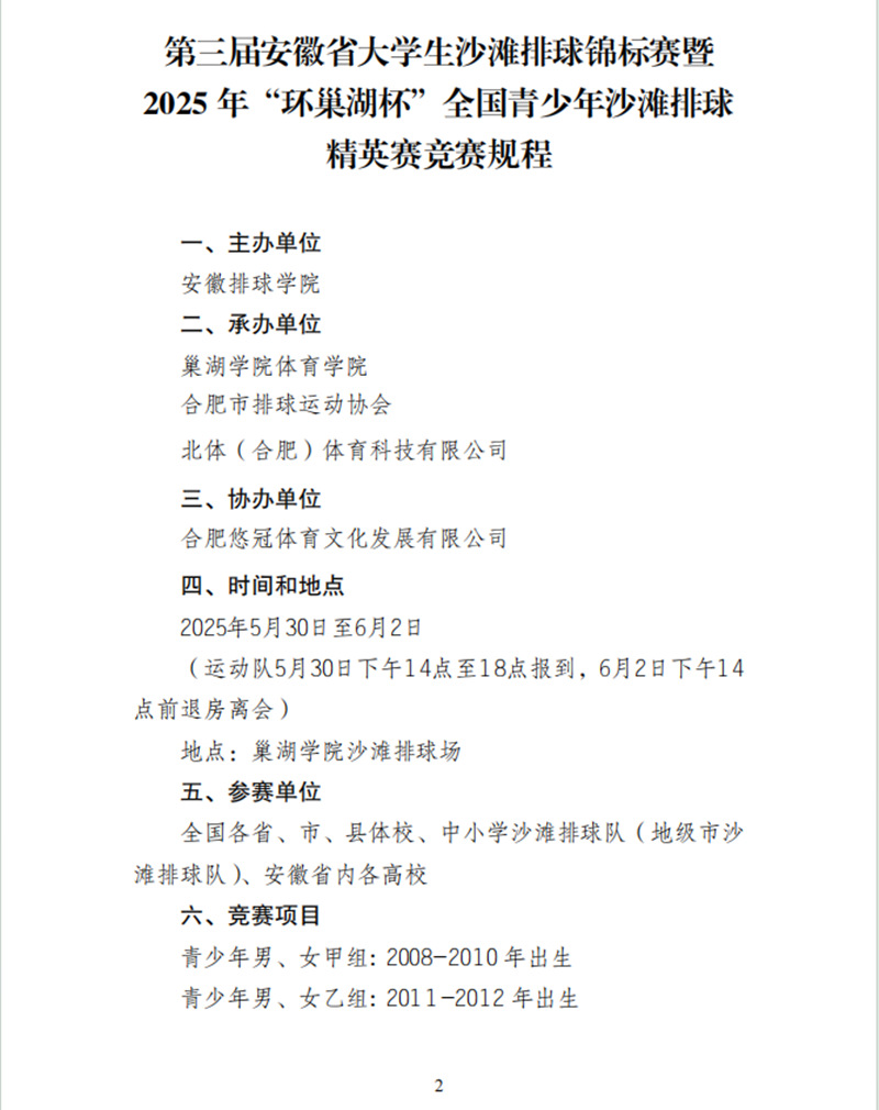 关于举办第三届安徽省大学生沙滩排球锦标赛暨2025年“环巢湖杯”全国青少年沙滩排球精英赛的通知.pdf