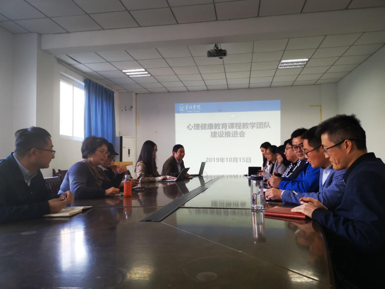 10月15日下午,金年汇官方入口心理健康教育课程教学团队2019年度建设推进会在文教学院会议室举行。承担本学期2019级心理健康教育课程教学任务的十多位教师参加会议,会议由文教学院副院长、心理健康教育课程教学团队项目负责人李曙光主持。会议主要就心理健康教育课程教学团队建设工作开展研讨,同时就本学期《心理健康教育》课程教学改革、2019级新生心理普测结果反馈与处理等情况进行了交流。