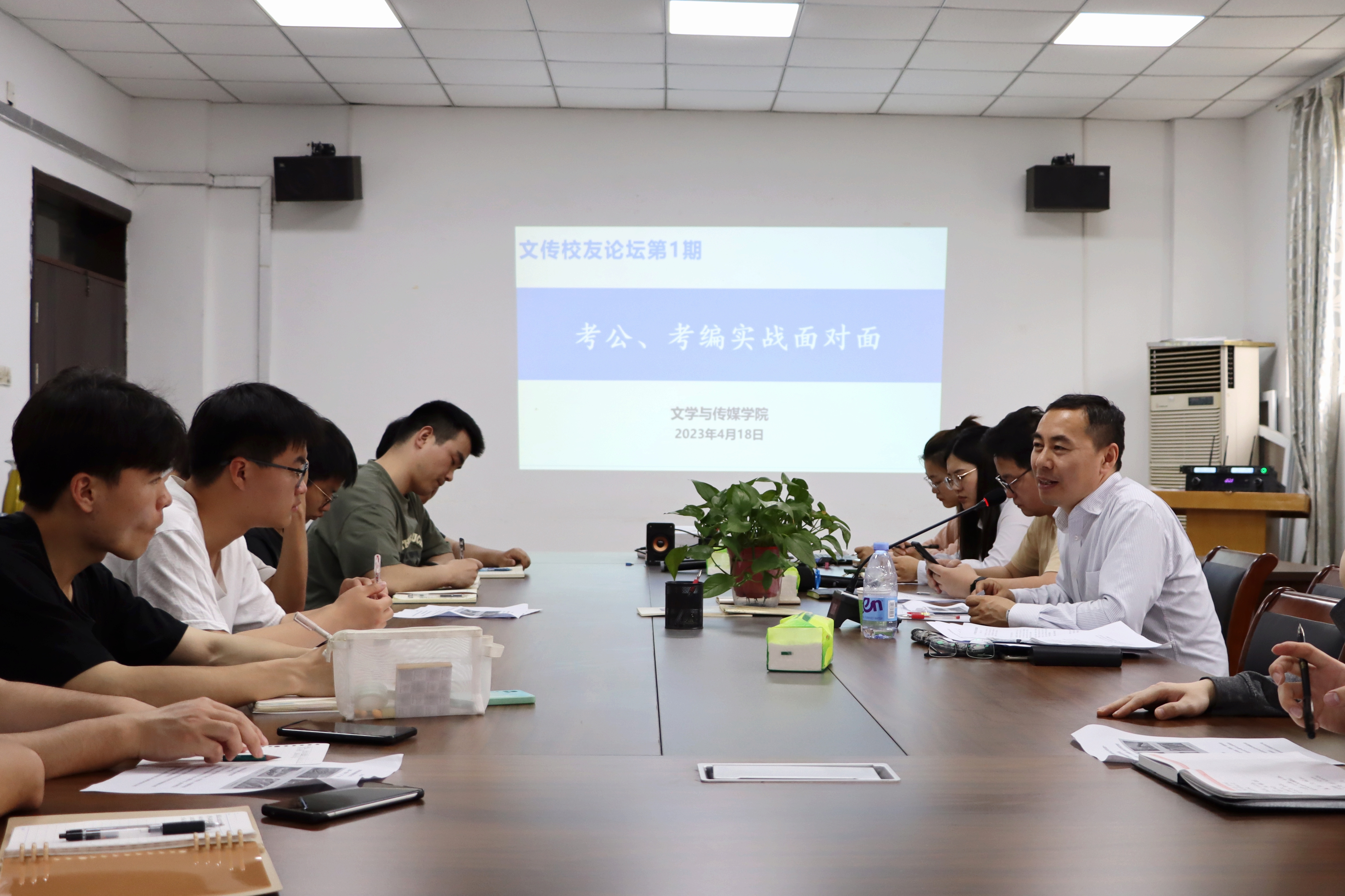 为进一步提高同学们考公、考编的应试能力和综合素质,4月18日下午,文传学院在敏行楼会议室举办文传校友论坛。本期论坛邀请到优秀校友、公务员考试专家、宁国市数据资源局党组成员、副局长李碧源为同学们进行公务员、事业编考试面试特点和应对技巧的专题讲解。论坛由学院党委副书记孙冰主持,就业创业工作联络员沈洁、辅导员任冰冰及有意向考公、考编的同学参加。