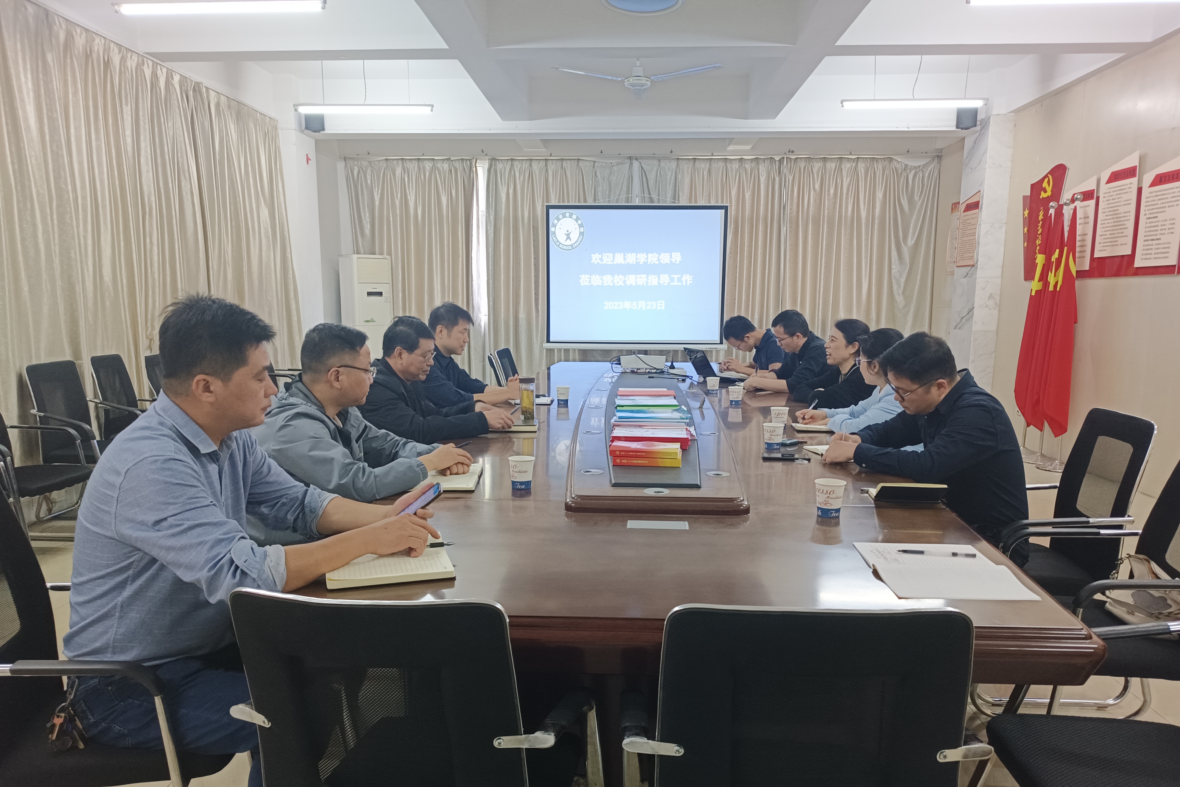 朱定秀一行人首先来到巢湖市新星学校,受到校长陶钎等人的热情接待。座谈会上,朱定秀介绍了金年汇官方入口的基本情况及访企拓岗活动的背景意义,希望新星学校能够为毕业生提供更优质的实习和就业岗位。陶钎介绍了新星学校的建校历史、师资队伍和生源情况,副校长唐宗传详细讲解了新星学校“一主两辐”的发展战略,双方就实习就业、教学教研和党团活动等相关问题进行沟通。