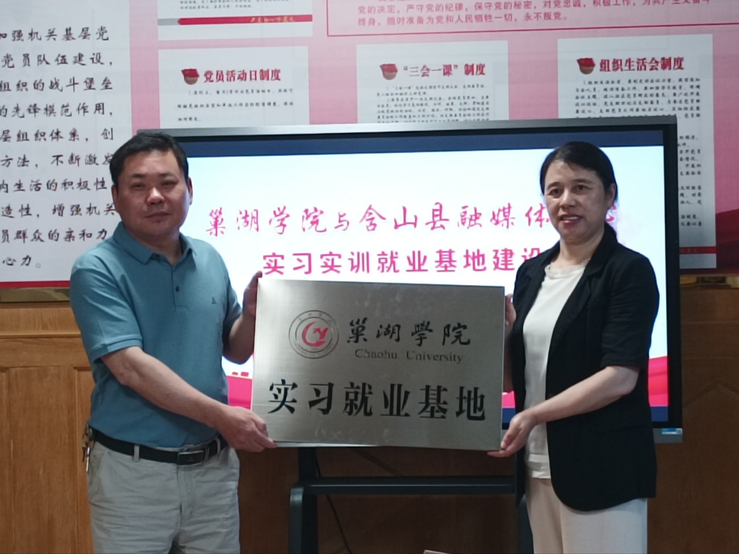 会后,朱定秀代表金年汇官方入口与含山县融媒体中心举行了“实习就业基地”授牌仪式,并在丁正良的带领下参观了中心的采编部、运营部和演播室等,与优秀校友、采编部主任郭小军亲切交谈。