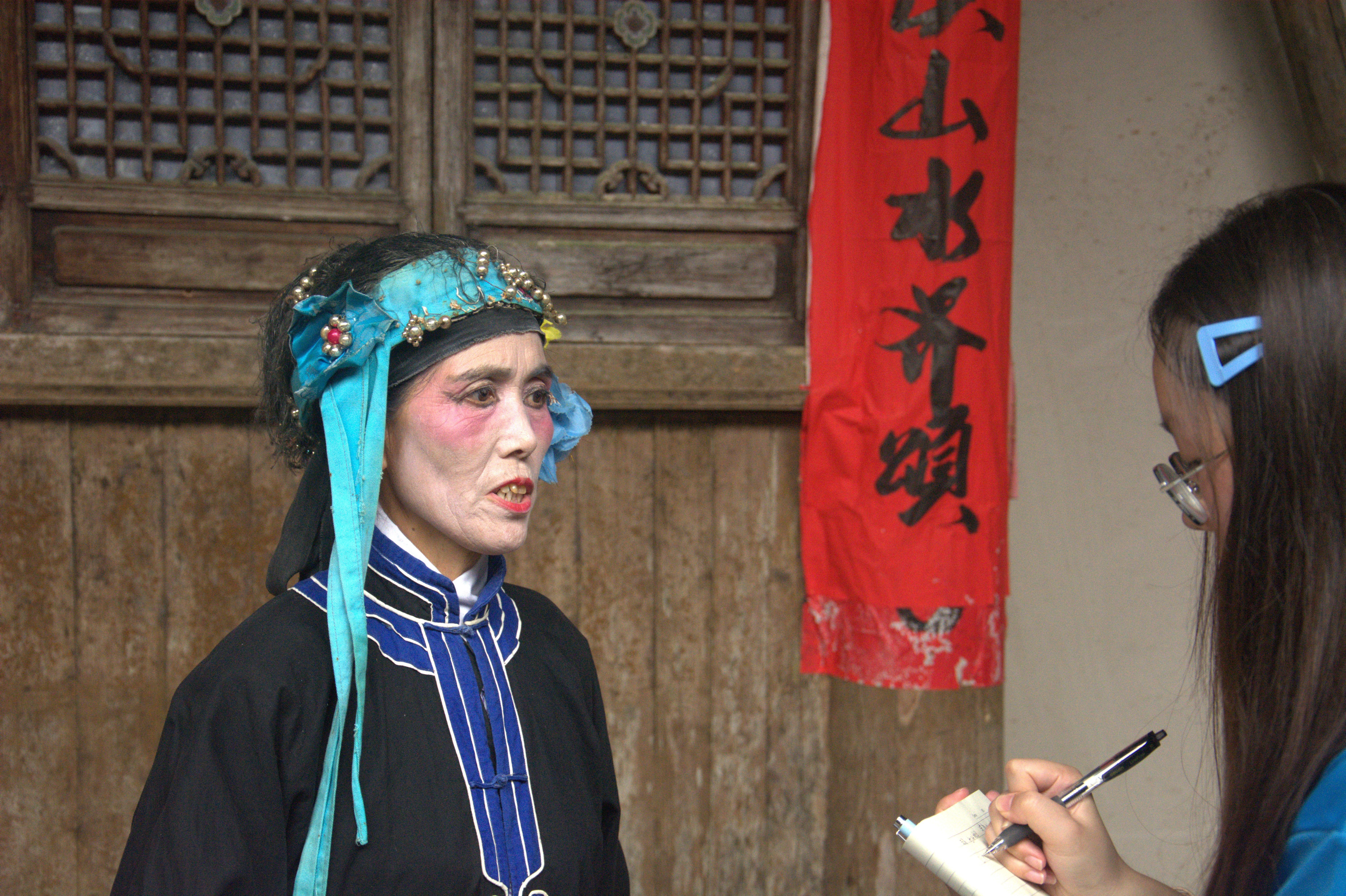 为进一步了解目连戏发展现状与难题,实践团在黄山市区、祁门环砂、祁门马山开展问卷调查和走访活动。在与群众的交谈中,成员们了解到目连戏在上个世纪时比较受欢迎,但随着时代发展变化特别是文化市场的大繁荣。目连戏的受众越来越少,市场萎缩。只有在重大的节日时,才能看得到、听得到。访谈中发现,目连戏演员中有一部分非专职人员且年龄偏大,他们平时因生计等原因需外出务工,特殊的日子才会聚到一起表演。目连戏的传承和发扬缺少新生力量的注入,如何保护和传承目连戏,成为迫切需要面对的问题。当地政府也切实开展了一些工作,与传统节日相结合开展送戏下乡、送戏进校园等活动,让年轻一辈认识到其独特的韵味,了解目连戏文化。
