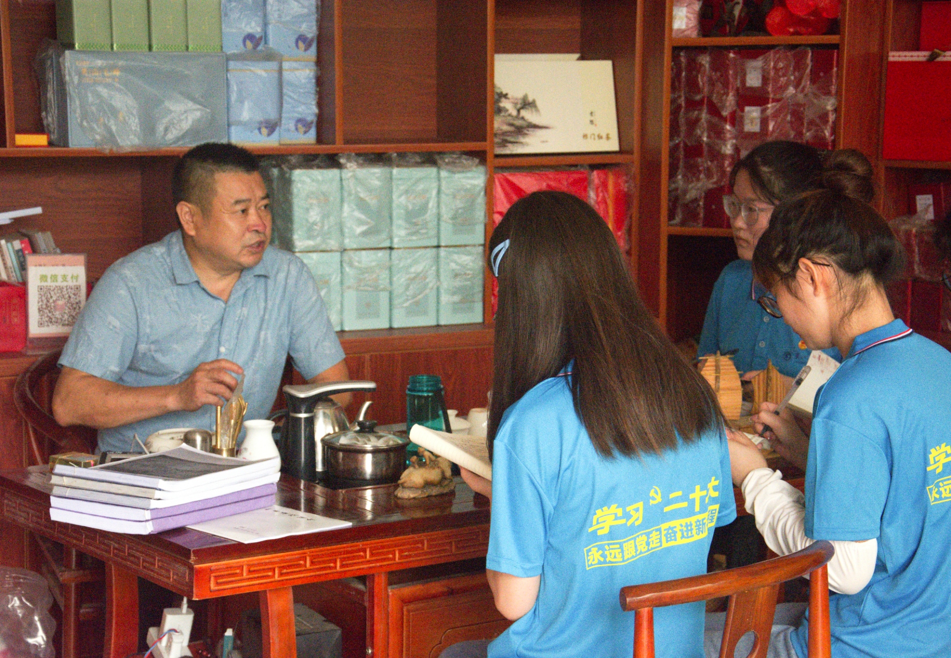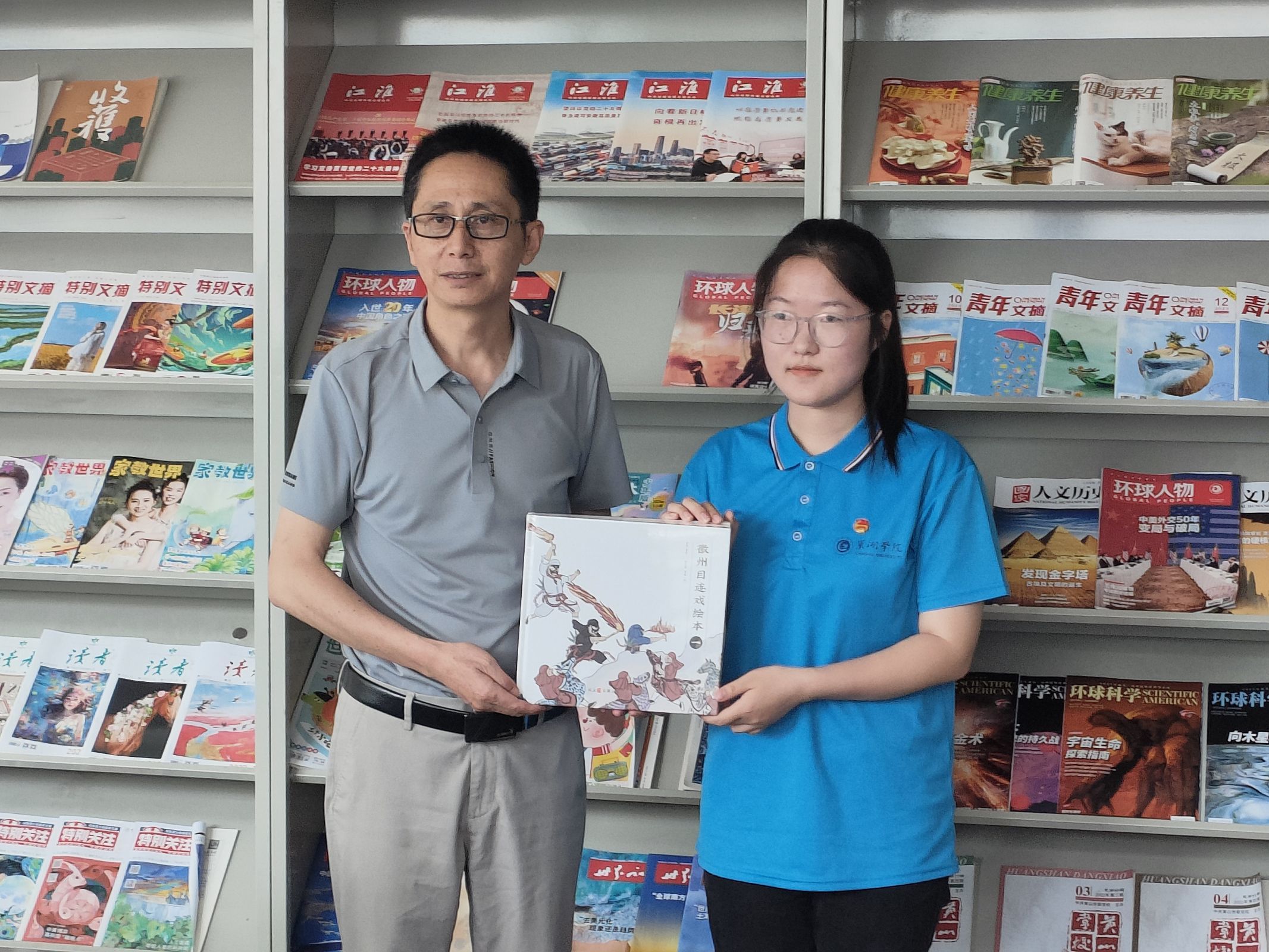 7月7日,实践团成员来到了祁门县文化旅游体育局,与县文旅体局党组成员章四海进行了深入交流。实践团成员们分享了自己的调研成果和实践感悟,并结合自己的专业知识提出了创新的发展思路和方案。章四海从过去、现在、未来三个方面谈目连戏的传承。他表明过去已经系统地整理了目连戏的曲牌与曲目,并利用数字化平台,将目连戏曲目录音,以便其传承;政府还出资编绘了目连戏绘本,使目连戏更通俗易懂。现如今正在打造实体化空间的目连文化展示馆,以整个环砂村为大舞台,利用放生池、黑松林、叙伦堂等小舞台,让游客沉浸式体验目连文化。对于目连戏的发展,未来也有四点规划。一是培养一支专业的演出团队,目前的表演团队以农民为主,具有一定的局限性;二是编排一出经典剧目,在有限的时间将目连戏情节串联,从开始、发展、高潮、结束,形成一个完整的脉络;三是以祁门县西部五个传统古村落,即清溪、环砂、历溪、栗木、马山为载体,建设一个省级目连文化生态保护区;四是以目连戏的经典故事制作一部动漫,更大范围地宣传目连戏。最后,他强调保护和传承目连戏,除了资金支持外,还需要一批批目连戏爱好者去共同努力。结束时,章四海向实践团赠送了一套目连戏绘本,希望实践团更好地弘扬目连戏文化。