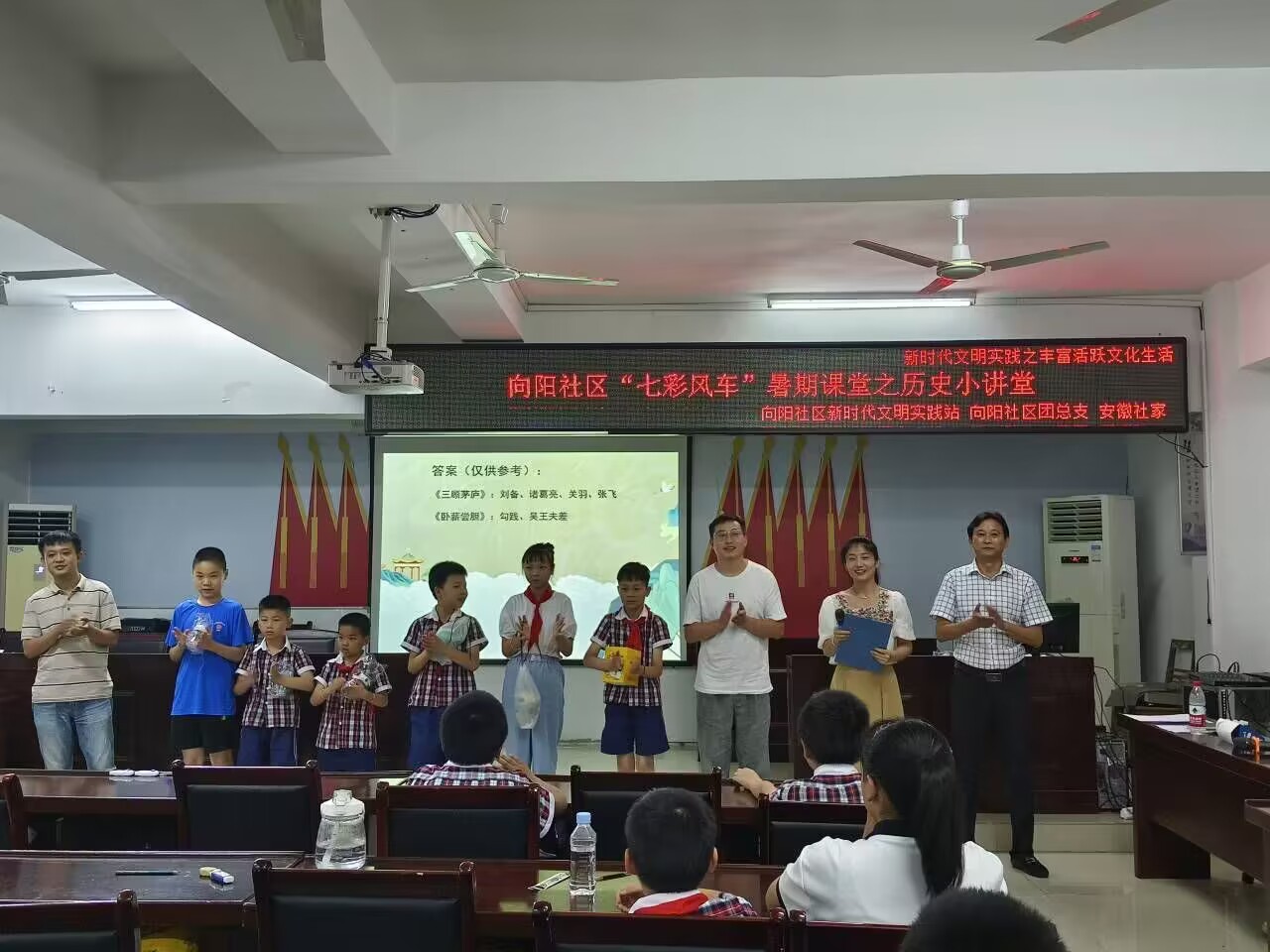 在凤凰山街道向阳社区,实践团以“七彩风车”为暑期课堂主题,通过古诗词鉴赏、防溺水知识宣讲、历史故事、知识竞赛和音乐小课堂等形式多样、寓教于乐的活动,提升了社区孩子的文化素养、安全意识,丰富了他们的暑期生活。在黄麓镇合群村,实践团结合实际情况,以村留守儿童为帮扶重点,将“安全教育”为暑期课堂主题,通过线上线下相结合的方式,向孩子们宣传防溺水、交通安全、用电安全、食品安全等内容,进一步加强留守儿童的安全教育,防范于未然。