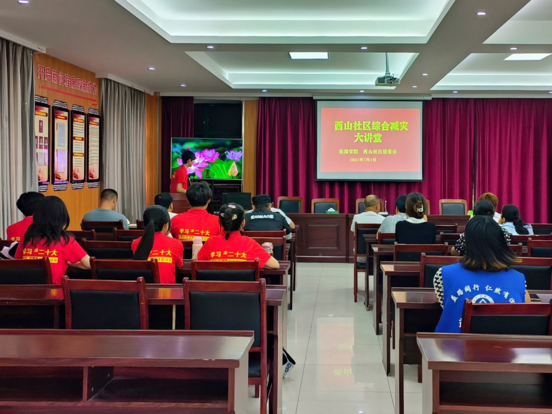 7月3日至5日,团队成员围绕社区常见灾害类型在西山社区党群服务中心面向社区居民开展了一场综合防灾减灾专题讲座,同时结合社区老年人占比较多的实际情况,针对性开展防范电信诈骗、交通安全方面的知识宣传。