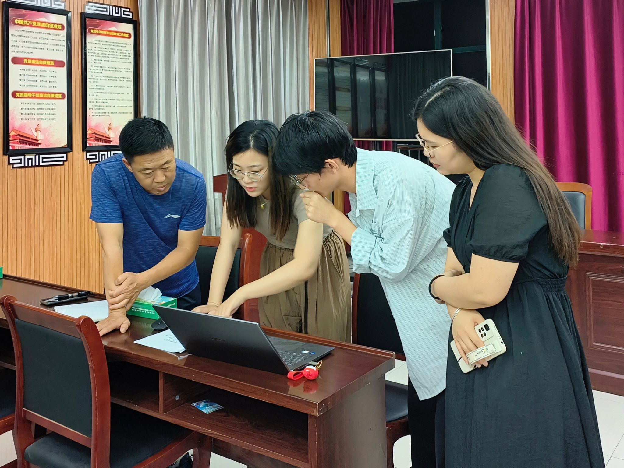 6月30日,在学院党委副书记孙冰和指导老师任冰冰、沈洁的带领下,团队成员赴西山社区与社区工作人员开展工作布置会,对于活动开展的内容、形式、时间进行商讨和确认。