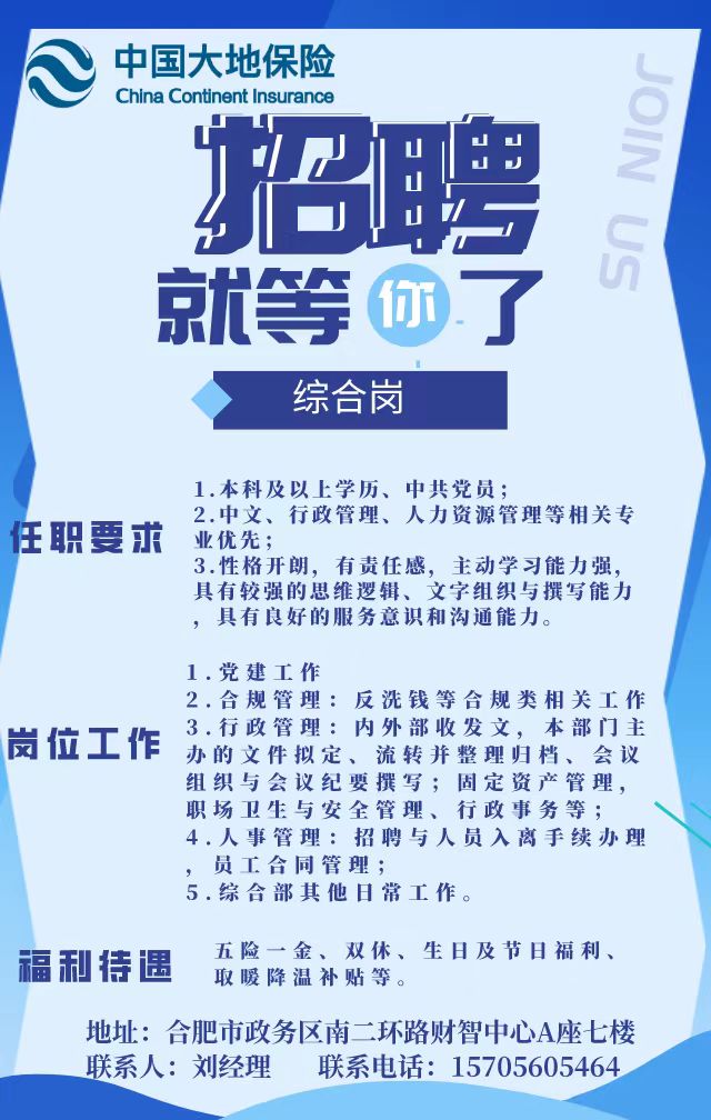 【招聘信息】中国大地保险招聘公告