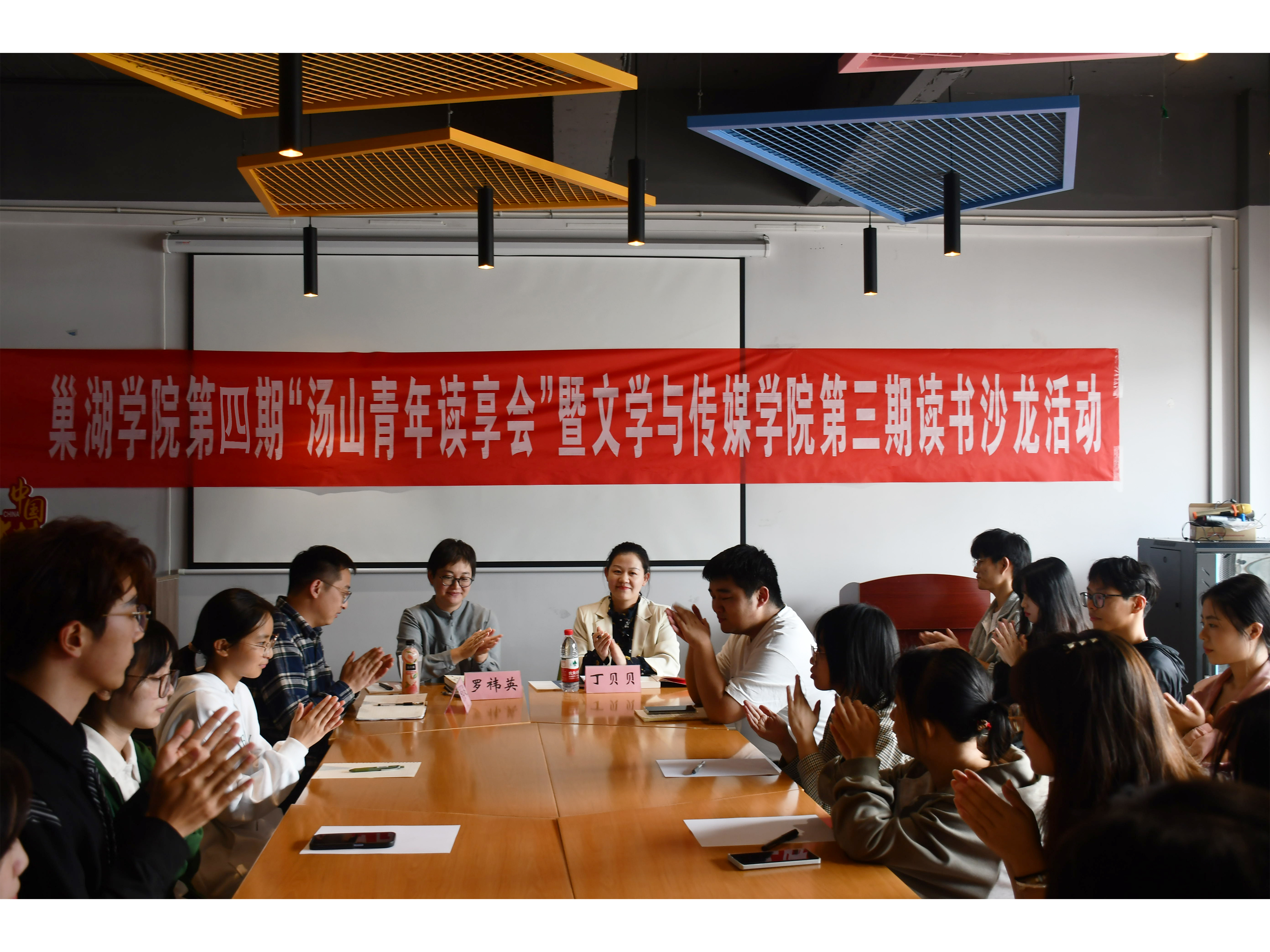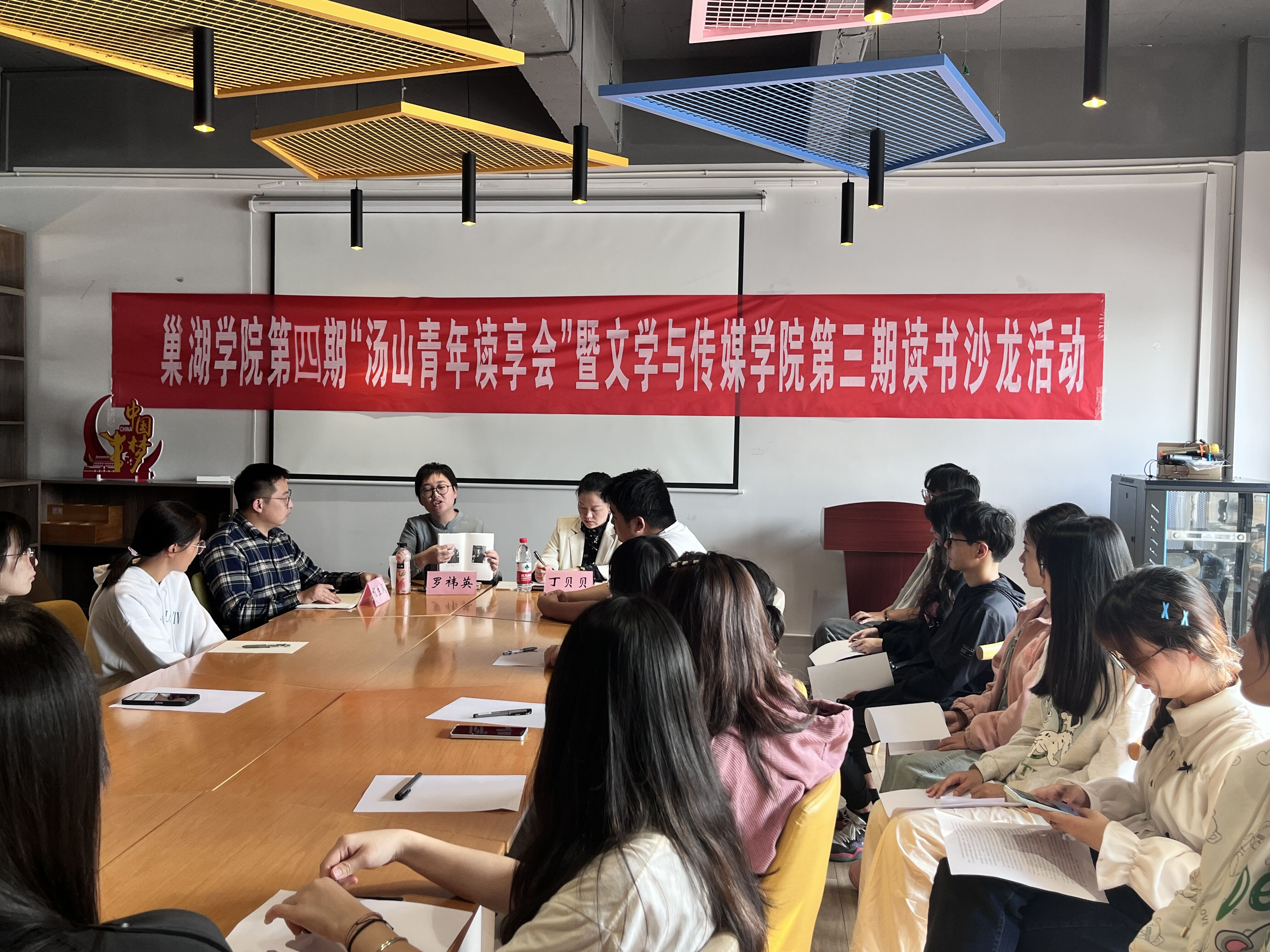 为高质量推进校园文化内涵建设,进一步提高大学生的阅读兴趣,10月11日下午,文学与传媒学院在汤山书苑举办第四期“汤山青年读享会”暨文学与传媒学院第三期读书沙龙活动。本次活动邀请了文学与传媒学院罗祎英博士、马克思主义学院丁贝贝老师担任指导嘉宾,近40名同学现场参加沙龙活动,另外有近600名学生线上参加了此次活动。活动由文传学院团委负责人程生风主持。