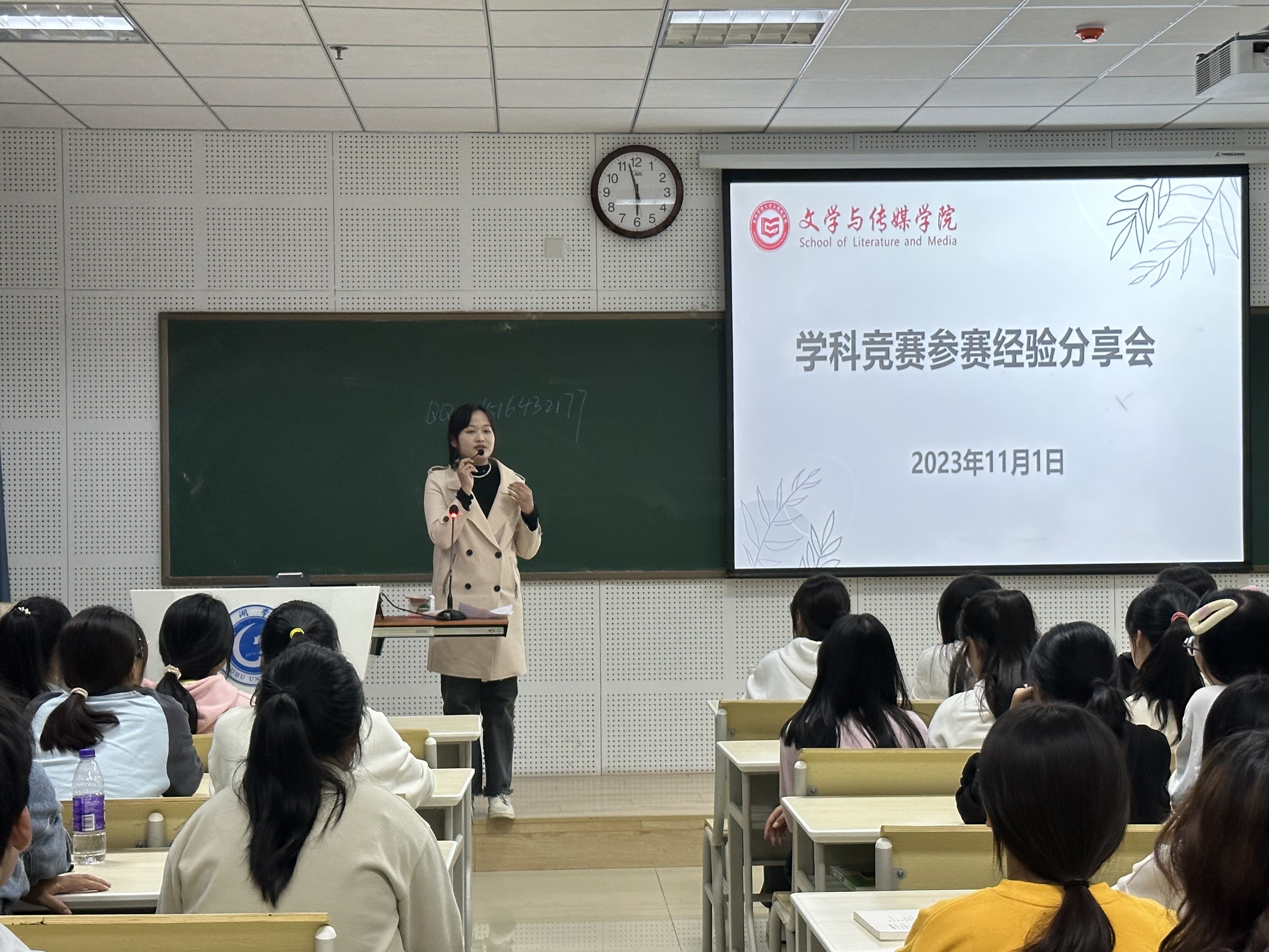 为加强学院学风建设,鼓励同学们积极参加学科竞赛活动。11月1日晚,文学与传媒学院在崇学楼南206教室举行学科竞赛参赛经验分享会。2023级网媒与新媒体专业和汉语言专业全体同学准时参加,活动由院党委书记袁凤琴老师主持。
