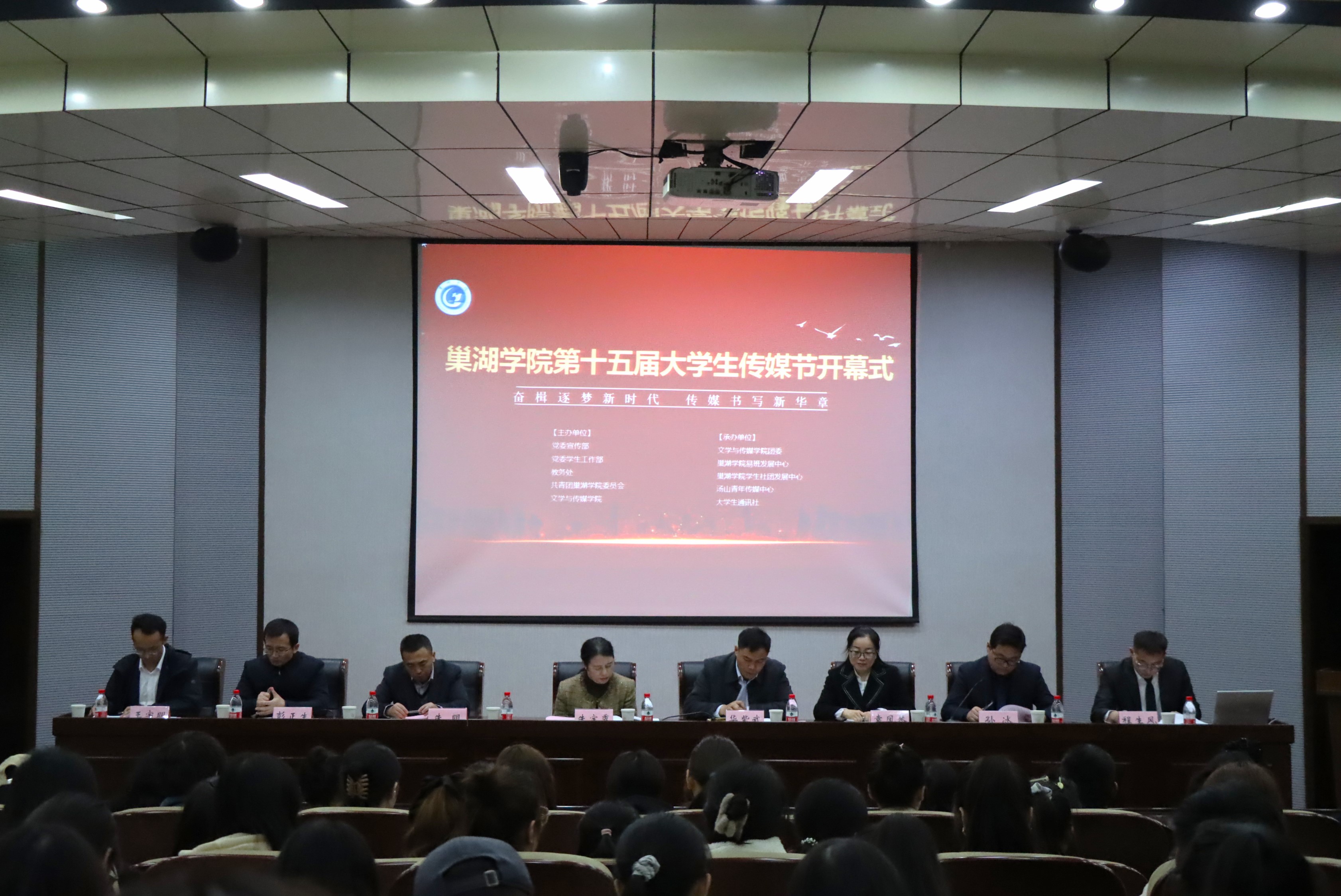 11月15日下午,金年汇官方入口在致知楼报告厅举办第十五届大学生传媒节开幕式。校党委委员、副校长朱定秀,党委学工部部长华紫武、教务处处长朱明、文学与传媒学院班子成员及各学院200余名师生代表参加了开幕式。开幕式由文学与传媒学院党委副书记孙冰主持。