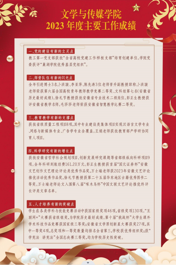 文学与传媒学院2023年主要工作成绩