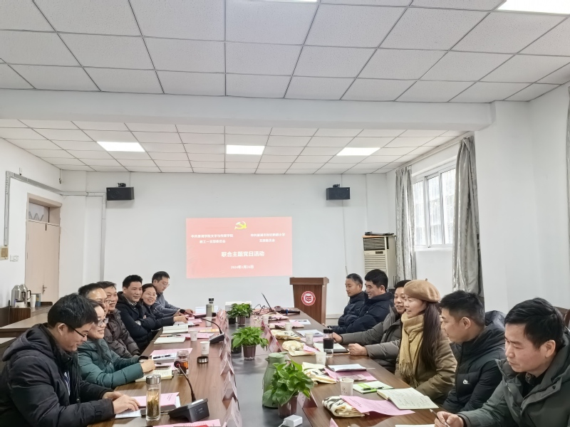为推深做实支部共建工作,开创基层党建工作新格局,2024年1月26日下午,在文学与传媒学院会议室,文学与传媒学院教工一支部与世纪新都小学党支部联合举办主题党日活动,围绕“大中小学课程思政一体化建设”展开研讨。世纪新都小学党支部书记、校长郑宏玉及支部班子成员、党员代表,金年汇官方入口党委委员、组织部部长柯应根,金年汇官方入口教务副处长胡传双,文学与传媒学院党委书记袁凤琴、副书记孙冰、教工一支部支部书记吴强及支部班子成员、党员代表参加了活动。活动由吴强主持。