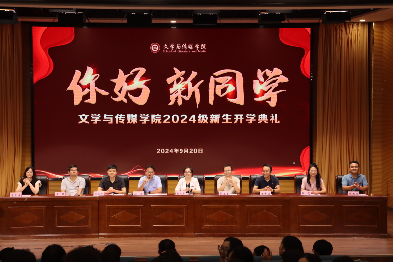 9月20日晚,文学与传媒学院在求实楼报告厅举行2024级新生开学典礼。学院领导班子成员、各系(实验中心)主任、教师代表、新生班级辅导员、兼职班主任和全体2024级新生参加了典礼活动,活动由学院党委副书记孙冰主持。