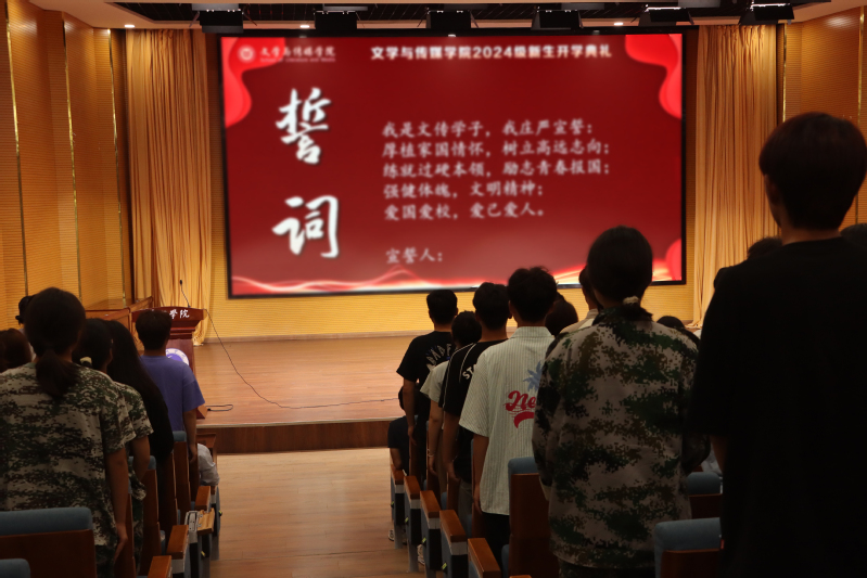 活动最后,举行了新生佩戴校徽和入学宣誓仪式。学院2024级新生全体起立,共同许下庄严承诺,以积极的心态、良好的行为全身心地投入到学习和生活中。