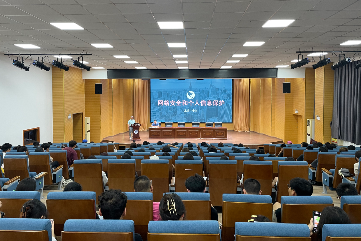 叶咏从国家网络安全形势与政策法规、个人信息安全范畴、注意事项及防护手段三个方面展开,结合真实案例及自身经验着重对网络攻击和破坏、个人信息泄露和窃取进行深入剖析,帮助学生了解网络安全现状,并掌握基本的网络安全防护技能。讲座过程中,学生们积极与专家进行互动,就如何应对日常的网络攻击等知识点与专家进行了深入的交流。学生们纷纷表示,本次讲座能够帮助他们进一步规范上网行为,提高网络安全警惕性,避免成为网络犯罪的受害者。