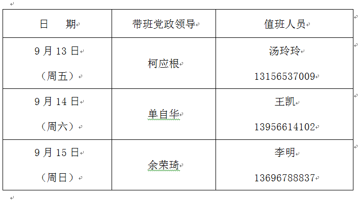 1.坚守岗位,履职尽责,确保手机24小时畅通。请各值班小组安排好放假期间的值班应急和安全保卫等工作,做好应对各类突发事件的预案;
