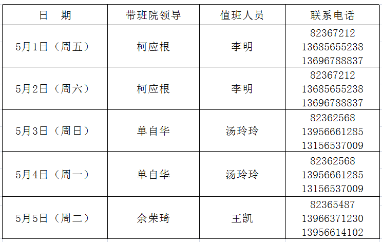 外国语学院2020年“五一”劳动节假期值班安排表