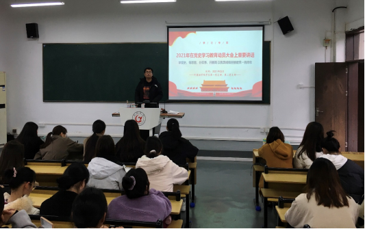 为深入贯彻习近平总书记在党史学习教育动员大会上的讲话精神,培养全体党员的党史学习热情,形成学党史、知党史、报党恩的良好氛围,外国语学院学生党支部于3月17日在明德楼西二教室开展党史学习教育。 外国语学院学生支部全体党员参加,本次会议由刘语主持。