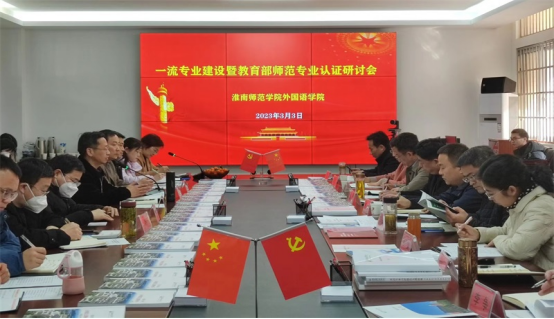 研讨会上,外国语学院党委书记杨智军介绍了淮南师范学院外国语学院概况及党建工作,他从政治学习、支部建设、意识形态、安全稳定等几个方面介绍了党建工作,并强调党建工作一定要做到位,意识形态工作要抓牢。外国语学院党政办副主任、英语专业学生第一党支部书记侯越玥做了题为“铁肩担时代使命,妙手著育人文章”的汇报,围绕“全国党建样板支部”、“安徽省先进基层党组织”,以教育党员、管理党员、监督党员、组织师生、宣传师生、凝聚师生、服务师生为主线,突出介绍了英语专业学生第一党支部党员学习教育的亮点和特色,用真实的数据说明了外国语学院一流专业建设的党建引领。方秀才做了一流专业建设的报告,他从专业概况、建设进展、问题与对策三个方面介绍了英语一流专业建设工作,最后还简要介绍了师范认证工作的安排与推进情况。发展规划处副处长储昭霞围绕学校抓统筹、部门抓协同、专业抓评建、教师抓课程“四位一体”推进师范专业认证工作,详细介绍了淮南师范学院师范专业的基本情况、专业认证的主要做法、专业认证的工作体会等。储昭霞特别强调认证工作一定要注重部门之间的协调工作,做到上下联动。教学副院长郑晓行梳理了师范专业认证自评报告撰写及现场汇报材料准备相关要点及注意事项,特别指出人才培养方案论证报告的撰写尤为重要。英语系主任齐东武补充介绍了师范专业认证材料准备等工作。英语系副主任周梦雯作为专业认证专家联络员就专家接待前、接待中、认证结束后三个环节中的细节把握做了详细分享。