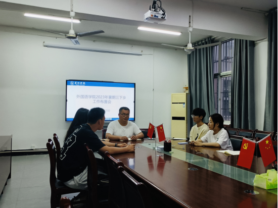 为提前谋划2023年暑期三下乡社会实践活动,落实精细化活动安排,确保后续工作顺利开展,5月25日晚,外国语学院团委在明德楼202会议室召开2023年暑期三下乡社会实践活动工作布置会,本次会议由学院团委副书记余仁能主持,各团学组织负责人参会。