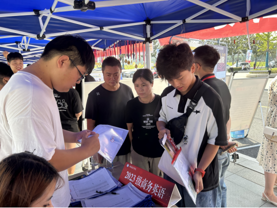 迎新现场,新生们陆续来到报到点,按照指引完成数字化报到,在志愿者引导下注册“学院公众号”、提交入学材料、领取新生资料。志愿者们热心为新生提供服务、解答疑问、指引报到流程,热情主动帮助新生搬运行李,让新同学们切身感受到外国语学院大家庭的热情和温暖。