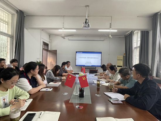 为认真做好学校2023年作风建设突出问题专项整治工作,不断提升学院管理水平和服务水平,广泛集聚师生智慧,2023年9月25日中午,外国语学院在明德楼202会议室召开了“师生面对面”学生座谈会,学院党委书记张蕊、院长余荣琦、副院长余鹏以及全体辅导员和部分学生代表出席了本次会议。会议由党委副书记李磊主持。