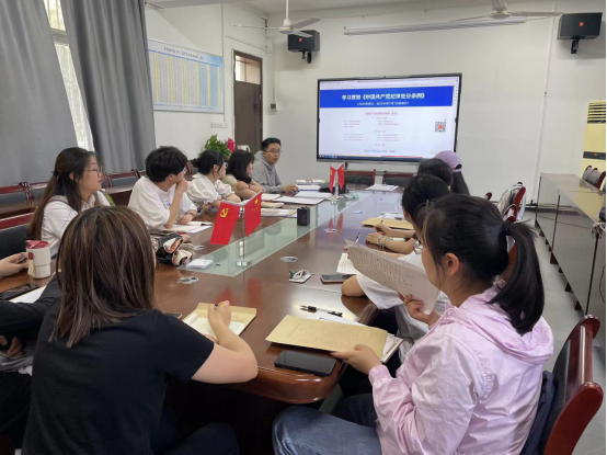 5月17日下午,外国语学院学生第四党支部全体党员开展了党纪学习教育主题党日活动。支部支书记方磊主持会议。