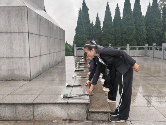 从青年学生们踏入烈士陵园的那一刻,便感受到了陵园严肃庄重氛围。全体青年学生们瞻仰纪念碑,表达对烈士们的敬仰之情。接着,同学们用自带的垃圾袋为烈士陵园清除垃圾,将革命先烈墓碑前的鲜花摆放整齐,为烈士陵园创造整洁的祭扫环境。随后,同学们纷纷来到纪念碑前,向革命先烈们献上鲜花,鞠躬、默哀。革命先辈们用鲜血换来今天的幸福生活,新时代的新青年应牢记历史,珍惜来之不易的美好生活。通过祭扫活动,同学们寄托了对革命先烈的深切哀思,感受到了红色历史,汲取了奋进力量。