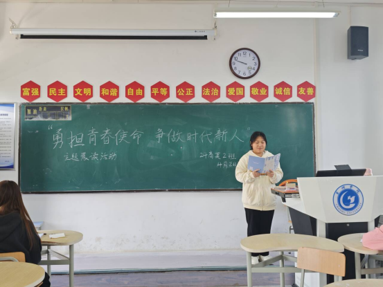 各班级在宣传委员的组织下,精心选取诵读篇目。从《习近平与大学生朋友们》中感悟领袖对青年的殷切期望,到《沁园春・长沙》《我爱这土地》等红色诗词中重温革命先辈的壮志豪情;从《论语・大学・中庸》的深邃哲思到《诗经》的典雅韵律,学生们在抑扬顿挫的诵读中感受文字力量,在字里行间中厚植家国情怀。
