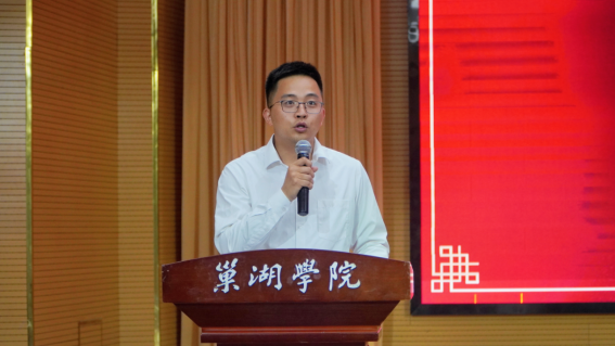 教师代表毕业班辅导员方磊发言感人肺腑,他带着毕业生们一起回顾了大学四年美好回忆的点点滴滴,满怀深情地对毕业生进行了最后的叮咛和嘱托。方磊表示,虽然大家惜别“在校生身份”,但今后可接续“校友”之谊,欢迎大家有空常回家看看。