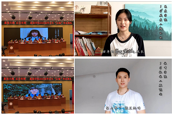 受疫情影响,2020届毕业生无法到现场观礼,但毕业学子心中对母校都承载着太多的祝福与惦念,寄托了太多的关怀与期望,现场共同聆听了毕业生代表从“云端”传来的对母校的深深祝福。