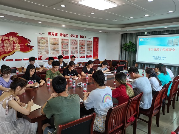 6月2日下午,2021年资助育人学生代表座谈会在学工部会议室召开。学工部副部长郭凤英、学生资助管理中心主任朱春花和各学院学生代表近30人参加会议。会议由朱春花主持。
