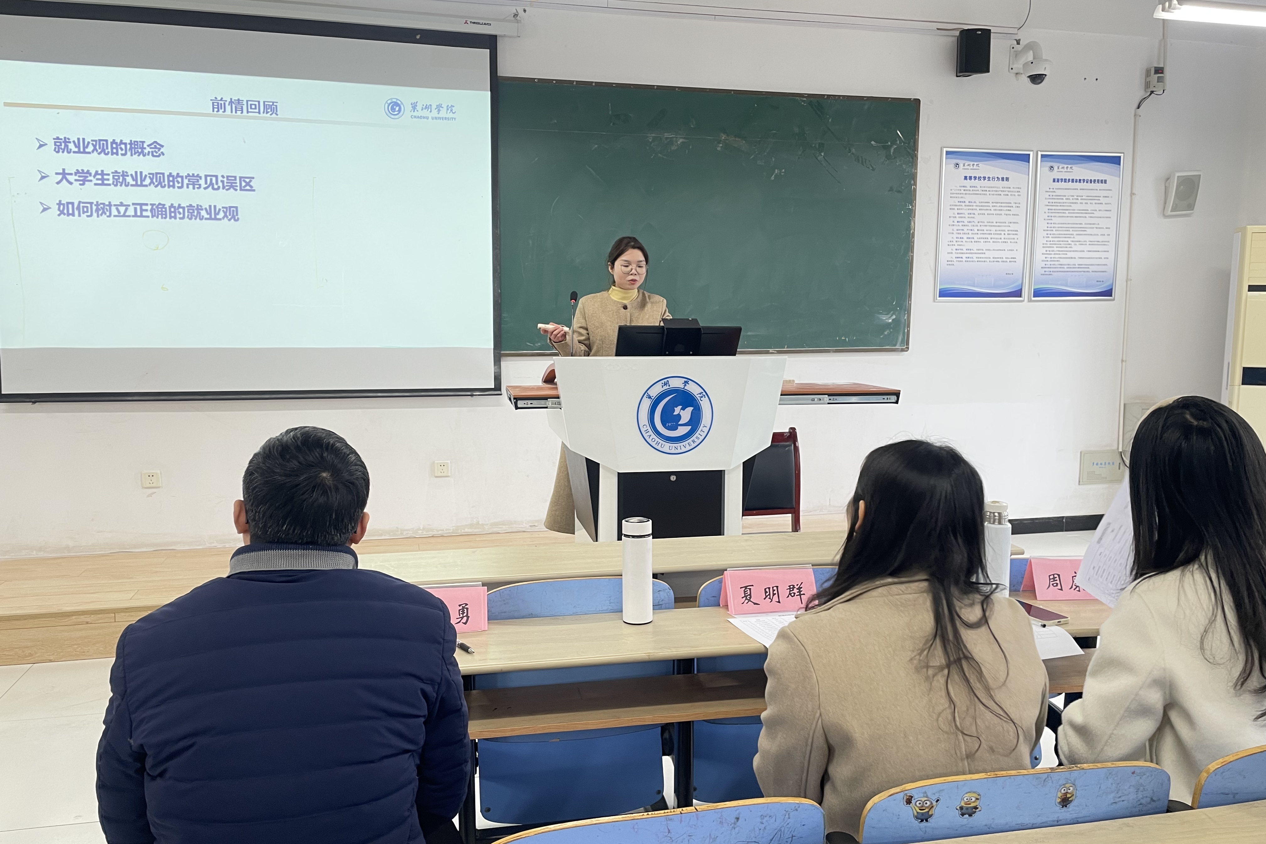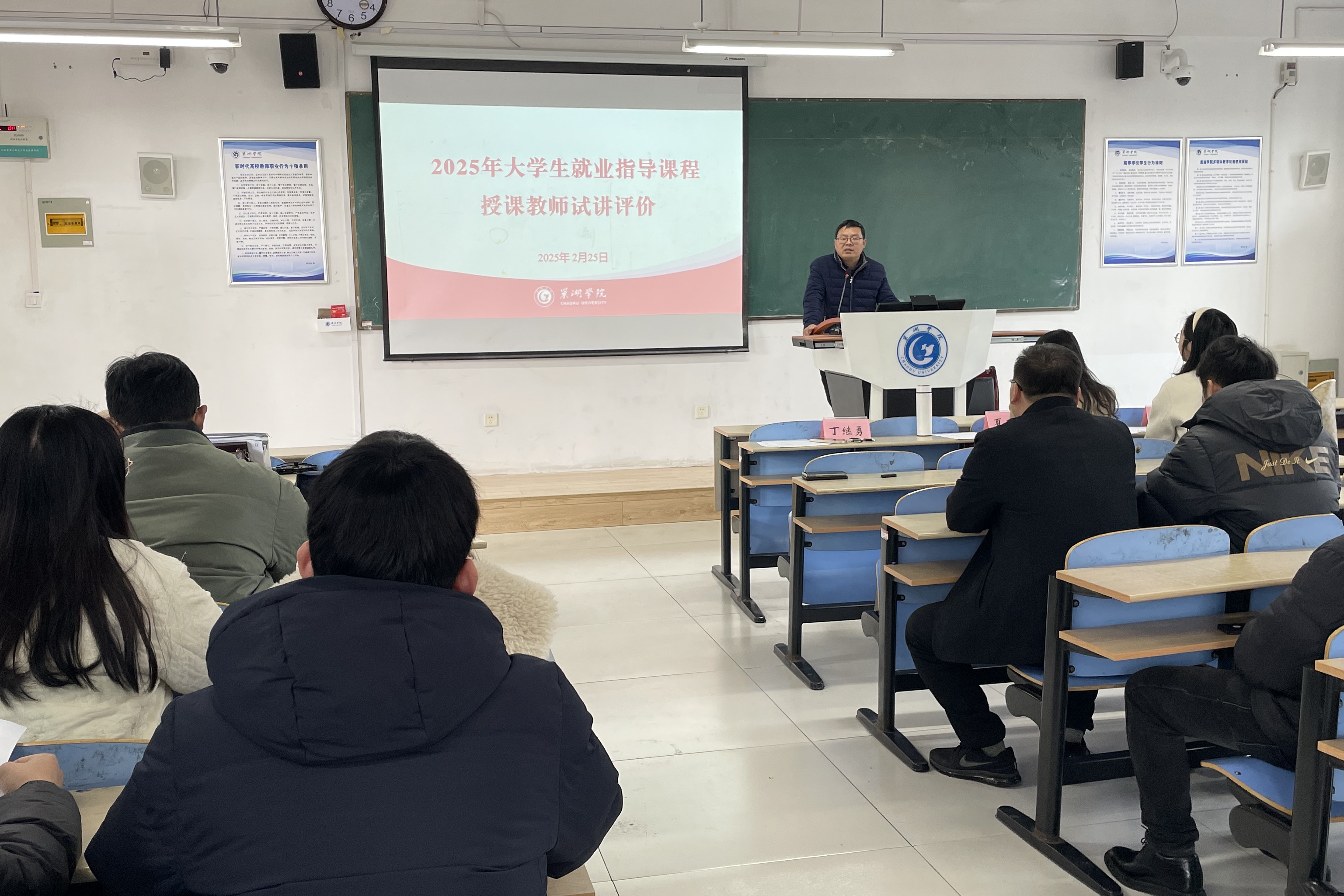 为深化教学改革,提升授课效果,2月26日下午,金年汇官方入口学工部在慎思楼北101举办2025年大学生就业指导课程授课教师试讲评价和遴选活动。长三角思政课大赛三等奖获得者、马克思主义学院夏明群,安徽省第六届高校青年教师教学竞赛一等奖获得者、数学与大数据学院周康妹以及学工部副部长丁继勇共同担任评委老师,学工部部长华紫武到场观摩指导。
