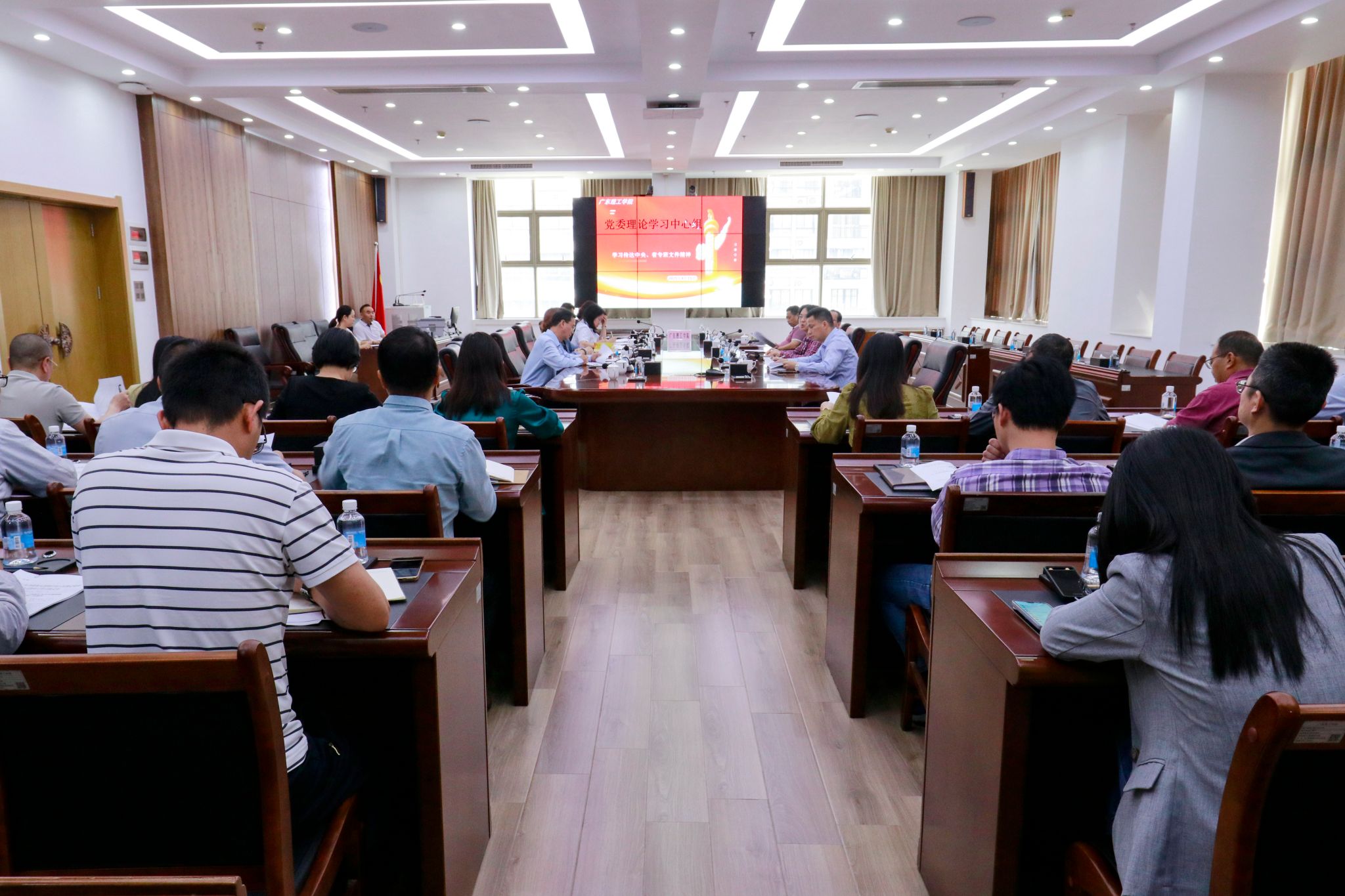 本网讯(宣传部) 4月15日上午,学校党委理论学习中心组在综合楼12楼会议室召开专题学习会议,深入学习中央、省专班关于中央八项规定精神的重要文件。会议由党委组织部部长廖振宇主持。廖振宇首先传达了中央、省专班文件精神,重点解读了《深入贯彻中央八项规定精神学习教育有关问题答复》等重要文件精神。廖振宇强调,中央八项规定精神是加强党的作风建设的重要抓手,必须深刻领会其核心要义,确保在实际工作中落实到位。党委...