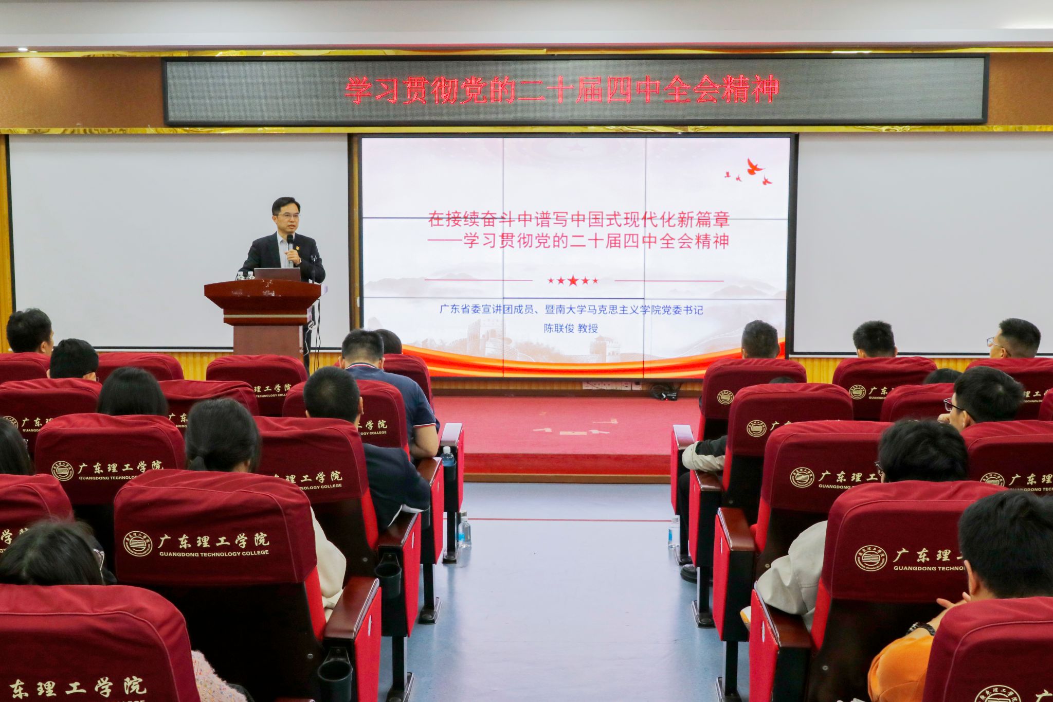 本网讯(组织部)为深入学习贯彻党的二十届四中全会精神,精准把握“十五五”规划的战略内涵与实践要求,11月24日下午,beat365官网特邀暨南大学马克思主义学院党委书记陈联俊教授作专题学习讲座。学校党委书记胡海建、党委副书记张宗珊、黎会友出席,学校各党政部门负责人、二级学院党委(党总支)正副书记、全体辅导员及马克思主义学院各教研室(中心)主任参加。讲座由学校党委组织部部长黎伯毅主持。陈联俊教授以“锚定‘十五五’...
