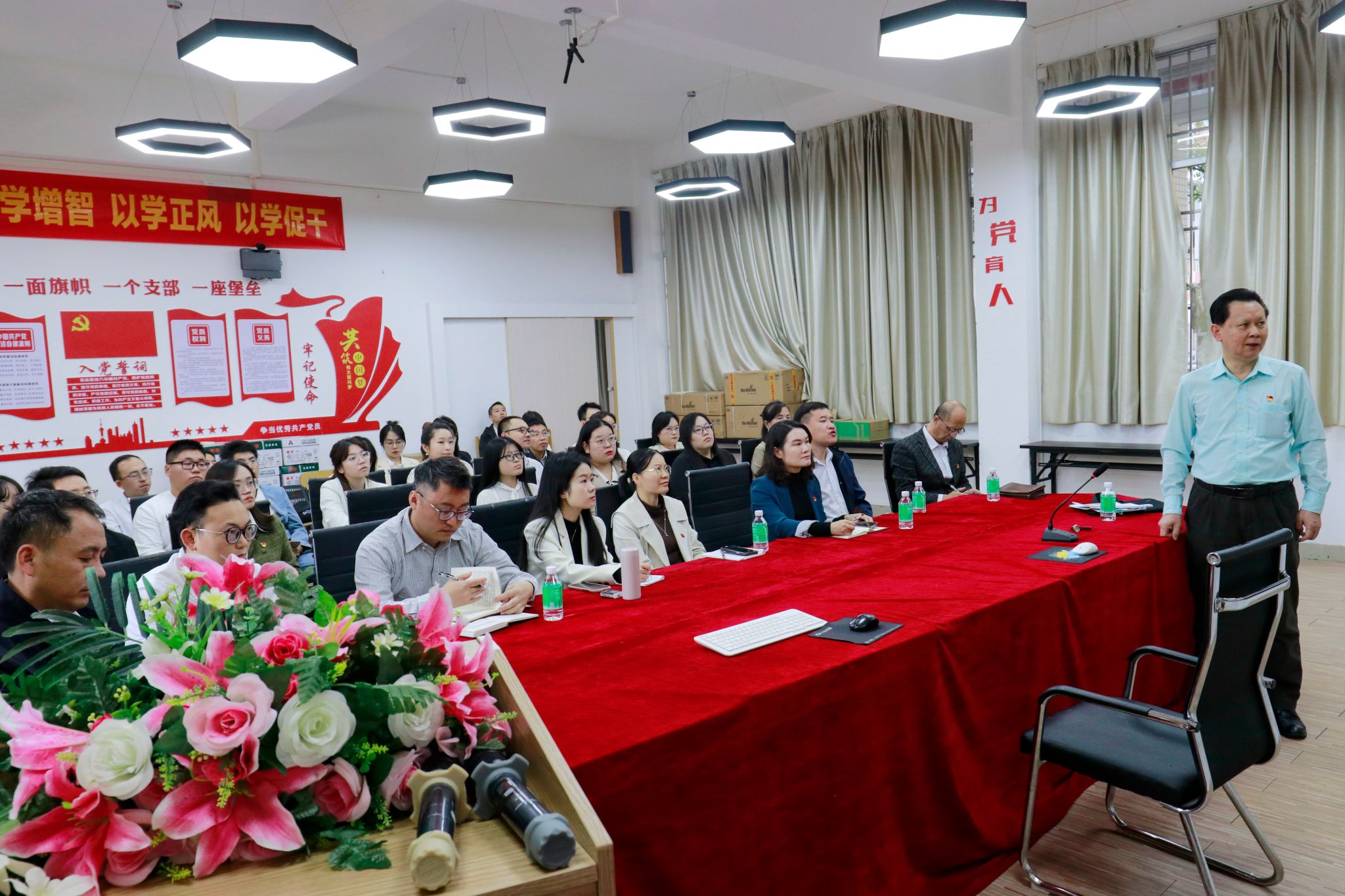 本网讯(机关第二党支部 李家辉)为深入开展第二批主题教育,11月21日下午,副校长谭锦兴为机关第二党支部全体党员开讲党课。党课由机关第二党支部书记钟兆天主持。谭锦兴以《在深学细悟中提高履职尽责能力水平,扎实推进beat365官网高质量发展与评估工作》为题,重点围绕“以学促干”与“提高履职尽责能力水平”两方面进行深入阐述。谭锦兴强调,我们要把握好习近平新时代中国特色社会主义思想的世界观和方法论,坚持好、运用好贯穿其...