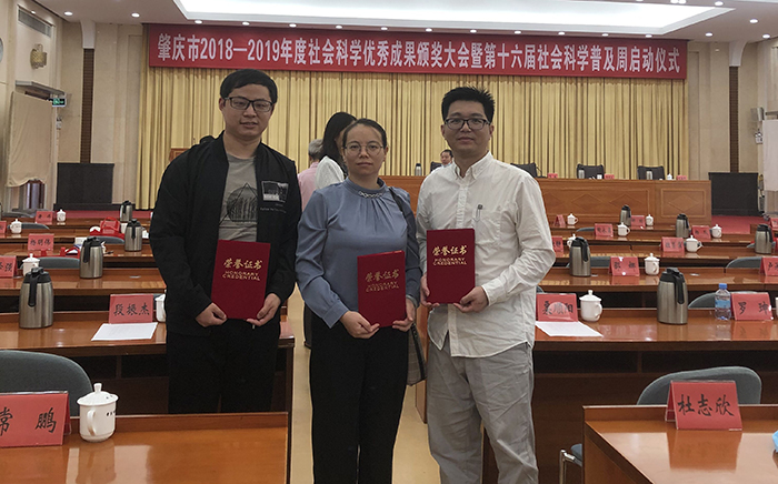本网讯(人事处 张春杨)2020年10月21日,肇庆市2018-2019年度社科优秀成果颁奖大会暨第十六届社科普及周启动仪式在市委小礼堂隆重举行。beat365官网陈洪超、伦肇亮、吴爱萍三位老师出席颁奖大会。 陈洪超老师撰写的《粤港澳...