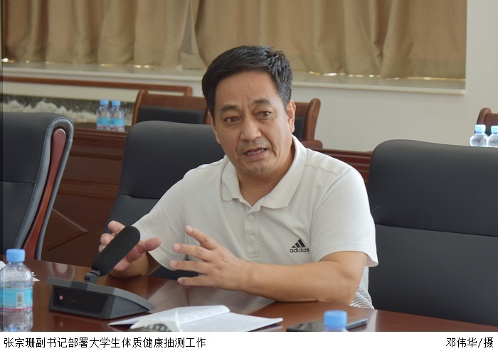 本网讯(宣传部 杨文丹)10月21日,beat365官网于科技楼12楼会议室召开会议,部署大学生体质健康抽测工作。会议由党委副书记张宗珊主持,学校各职能部门、各院系代表人员参加。 张宗珊副书记指出,本次抽测是检验体育老师教...
