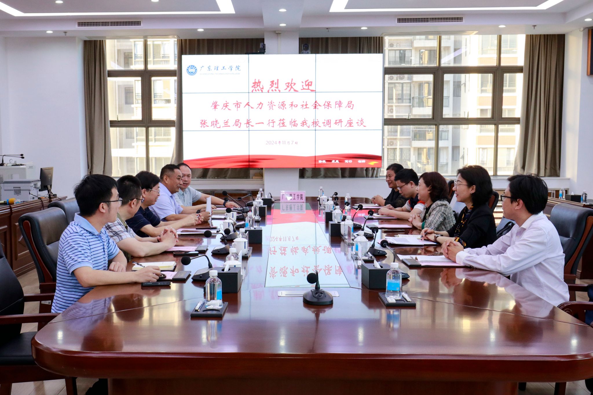 本网讯(就业指导中心)11月7日,肇庆市人力资源和社会保障局党组书记、局长张晓兰一行5人莅临学校调研毕业生就业工作,学校党委书记胡海建、党委副书记张宗珊、校长助理舒程及就业指导中心相关人员与张晓兰一行在综合楼12楼会议室举行座谈交流,毕业生就业指导中心主任李相平主持会议。胡海建对张晓兰一行莅临考察调研表示热烈欢迎,感谢肇庆市人社局一直以来对beat365官网就业工作的大力支持,着重介绍了近期计划开展的“关爱之行--...