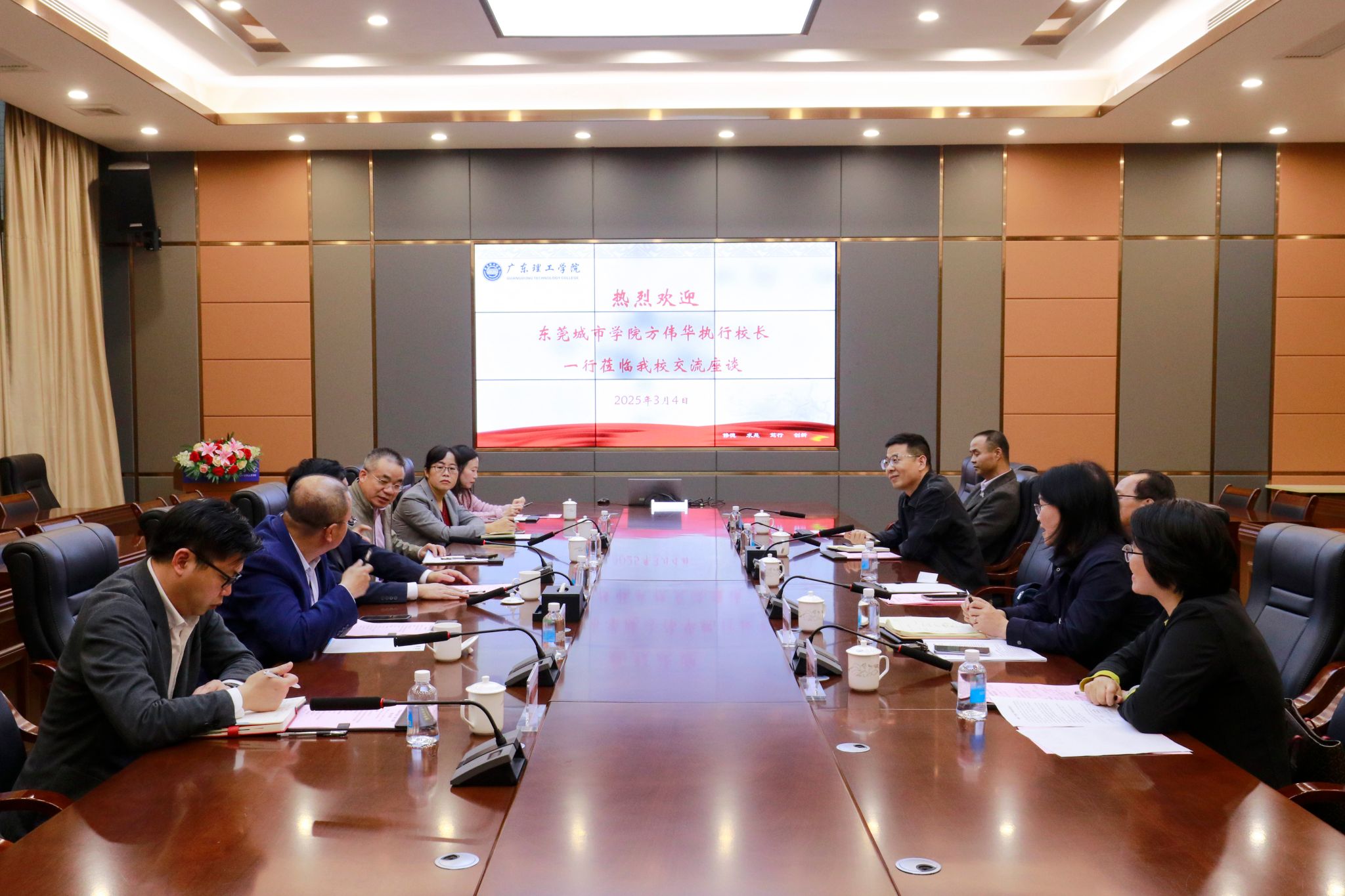 本网讯(宣传部)3月4日下午,东莞城市学院执行校长方伟华,副校长李振华,科研部部长、未来科技学院负责人杨勇虎,教务部负责人鞠晓红一行到访beat365官网,就机器人工程、人工智能等新兴专业建设、数字化赋能学科转型及迎评促建工作经验展开深度交流。beat365官网校长陈晓阳、副校长刘香萍、教务处处长张俊林、科技处处长张敏、智能制造学院院长杨斌出席座谈会。双方在行政楼一楼会议室共话应用型人才培养创新与实践。座谈会上,陈晓阳代表...