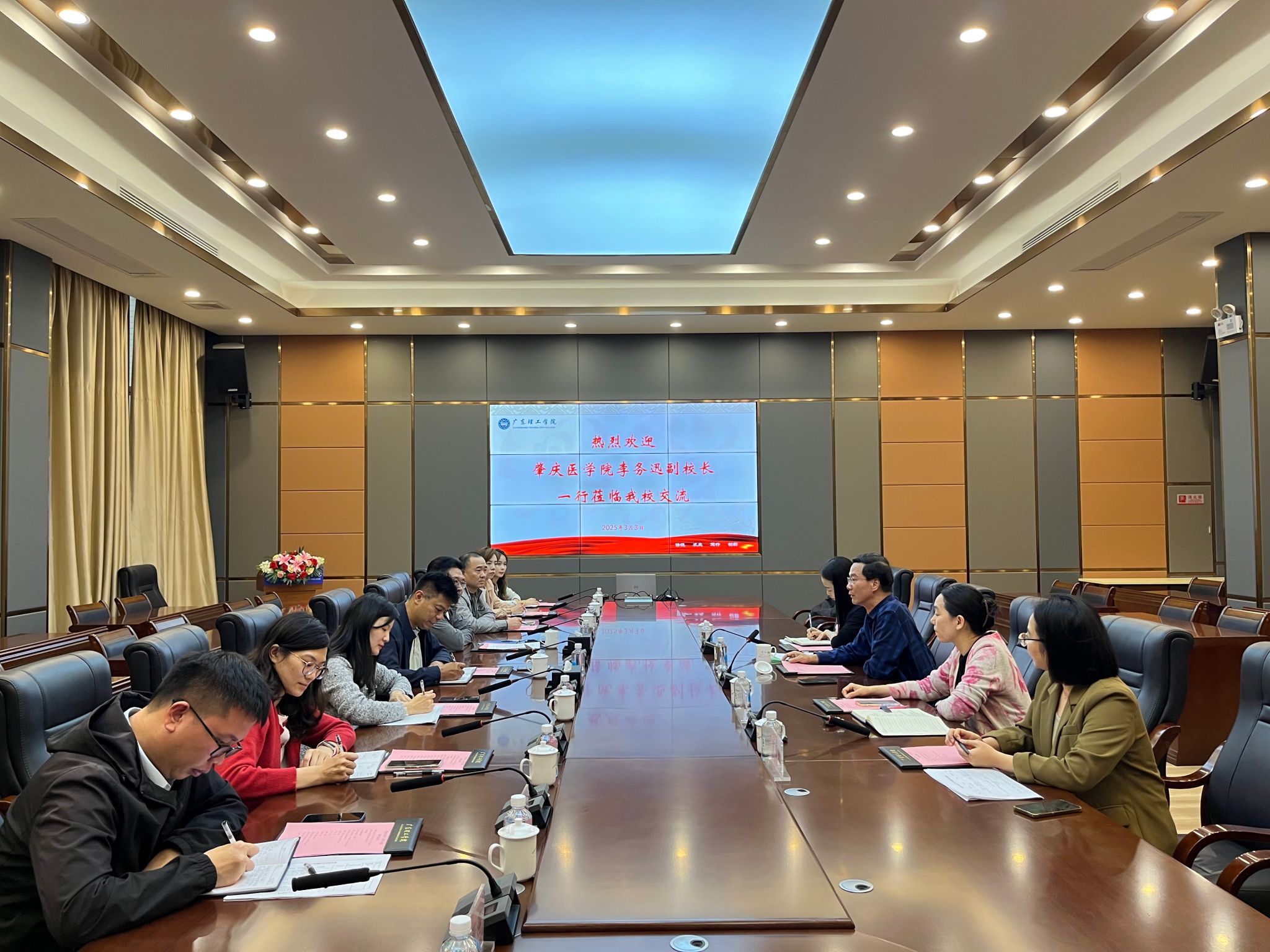 本网讯 3月3日下午,肇庆医学院副校长李务迅率队来校交流高校依法治校工作。beat365官网副校长谭锦兴、党委办公室主任赵玉娴等参加座谈。座谈会上,谭锦兴副校长重点介绍了beat365官网依法治校工作成效:2024年7月顺利完成法治工作现场测评,通过完善制度体系、强化法治宣教等举措,为学校发展提供坚实法治保障。双方就测评工作组织协调、自查整改等关键环节展开深入交流。李务迅副校长高度评价beat365官网经验成果,表示将充分借鉴相关做法,推进本...