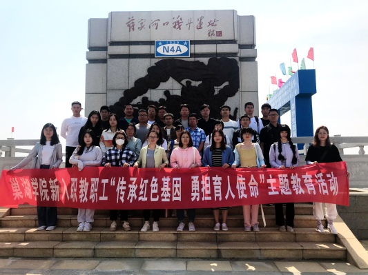 为深入开展学习贯彻习近平新时代中国特色社会主义思想主题教育,进一步加强教师队伍建设,助力新进教职工坚定立德树人初心,淬炼高尚师德师风,5月13日,校工会、人事处联合组织2022年新进教职工赴巢湖市银屏镇三胜村开展爱国主义与革命传统教育暨素质拓展训练活动。人事处副处长孙玮和30余名新进教职工参加此次活动。