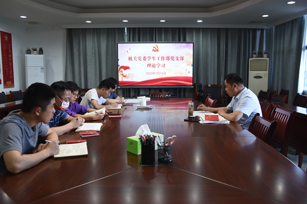 为深入开展学习贯彻习近平新时代中国特色社会主义思想主题教育,机关党委学生工作部党支部开展理论学习暨主题党日活动。会议由支部书记华紫武主持。