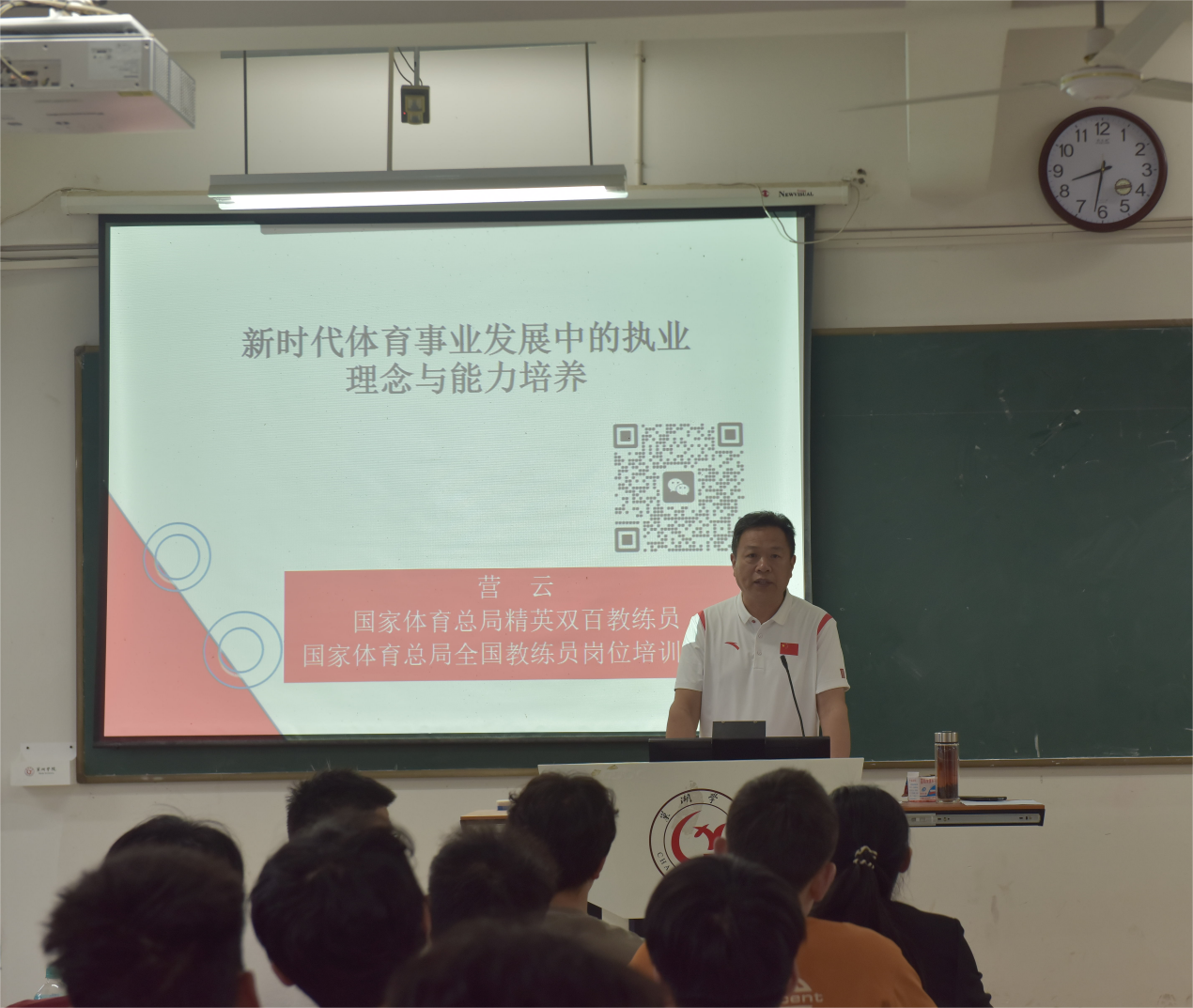 合肥体育运动学校运动科研室主任、国家体育总局教练员学院培训讲师、国家体育总局“精英双百教练员”、国际ICF教练员营云老师首先进行社会体育指导员理论培训。他以“体育强则中国强,国运兴则体育兴”为课程核心理念,为学员们讲解了作为社会指导员的社会责任,以及如何促进群众体育活动开展,推动深化体教融合的全面发展。