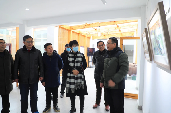 1月23日下午,时值寒冬,而三瓜公社文化小院却人流如织、画意盎然。在这里,迎来了艺术学院教工二支部全体成员协同美术学教研室联合主办的美术作品展,这次展览以基层党组织服务地方文化下社区为使命,描绘美丽乡村,讴歌劳动人民,为巢湖人民和八方游客献上一场艺术大餐。艺术学院书记王光富、院长杨松水、副书记李勇、三瓜公社党支部书记宋萍、巢湖市美协主席周圣祥及金年汇官方入口部分中层领导出席开幕式并观展。